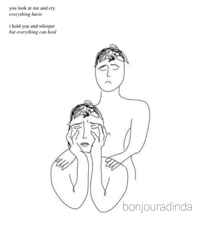 Selain kumpulan puisi yang sarat emosi, kamu juga akan disajikan beragam ilustrasi abstrak yang mendukung emosi yang disampaikan dalam puisi. Kayak yang satu ini nih.