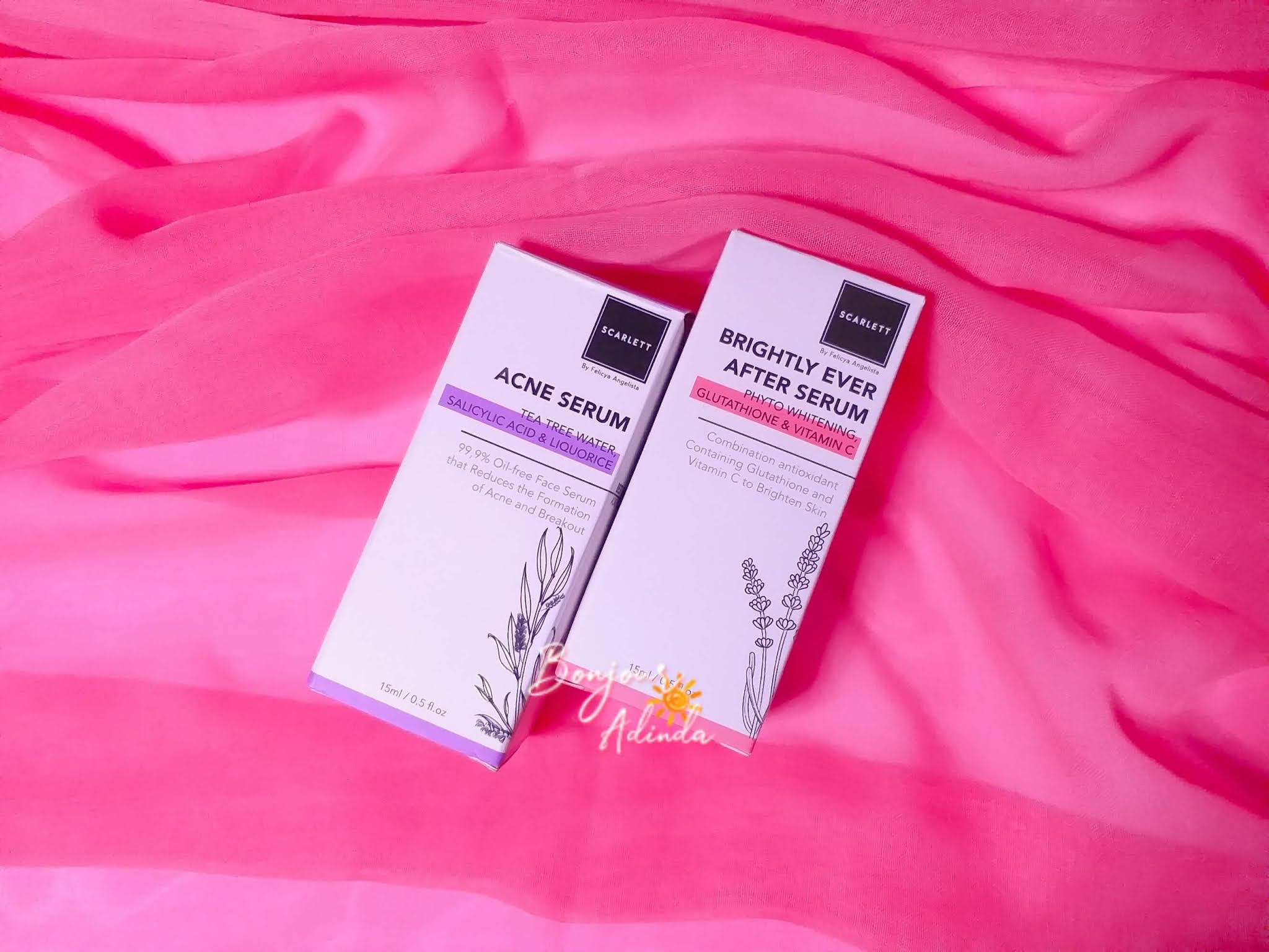 Bonjour Babys!—Kali ini aku bawa review dari Scarlett Whitening lagi, yeay! Yaitu produk baru skincare, Acne Serumdan Brightly Ever After Serum! Kayanya udah gak asing lagi ya? Meskipun baru, serum dari Scarlett ini udah hype banget!